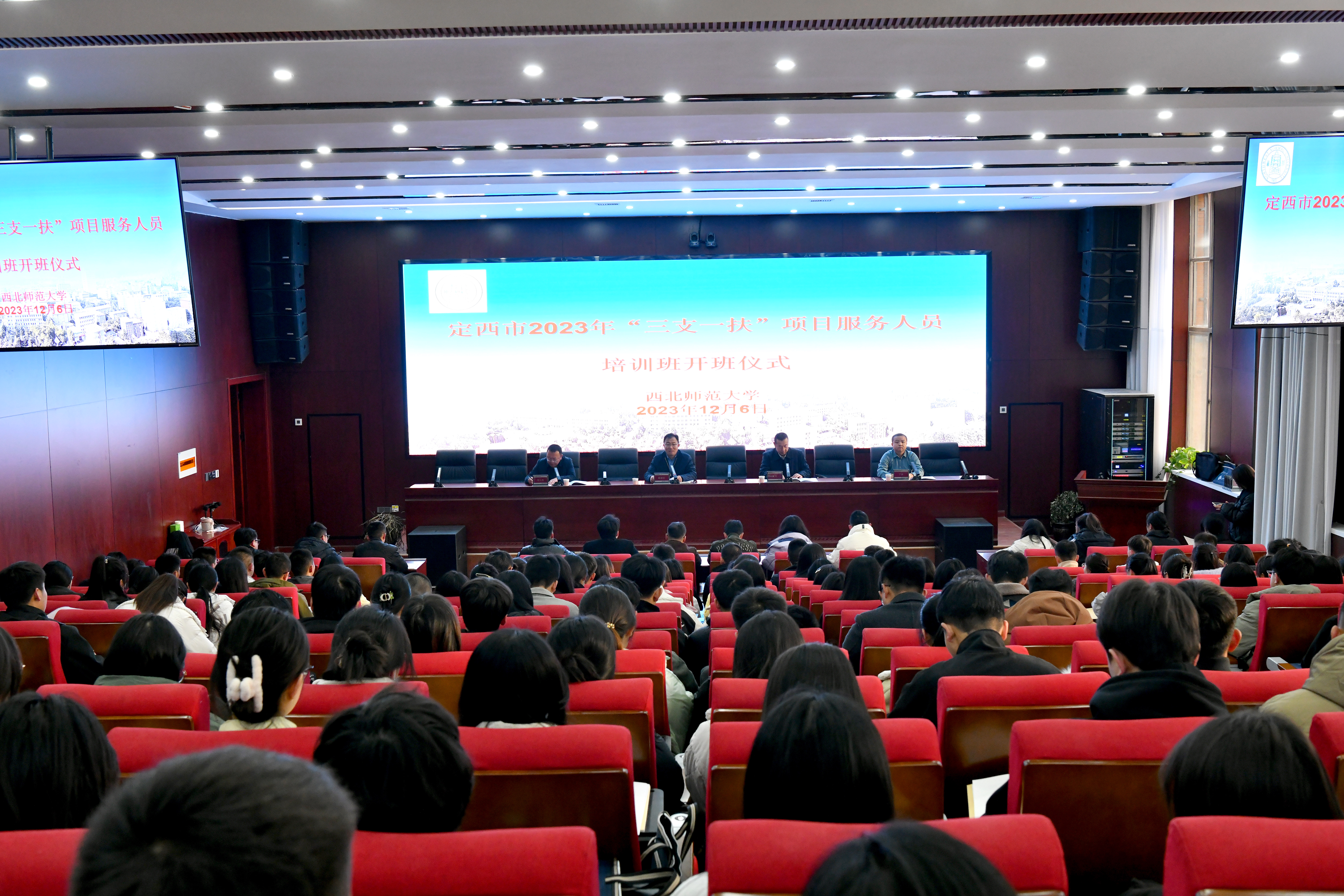 2023年12月6日上午,定西市2023年“三支一扶”项目服务人员培训班在3044am永利集团3044noc顺利开班。继续教育学院院长杨纳名,定西市人力资源与社会保障局副局长董军,定西市人力资源与社会保障局就业促进科科长郭大伟,继续教育学院培训中心相关负责人及220人培训学员参加本次开班仪式。