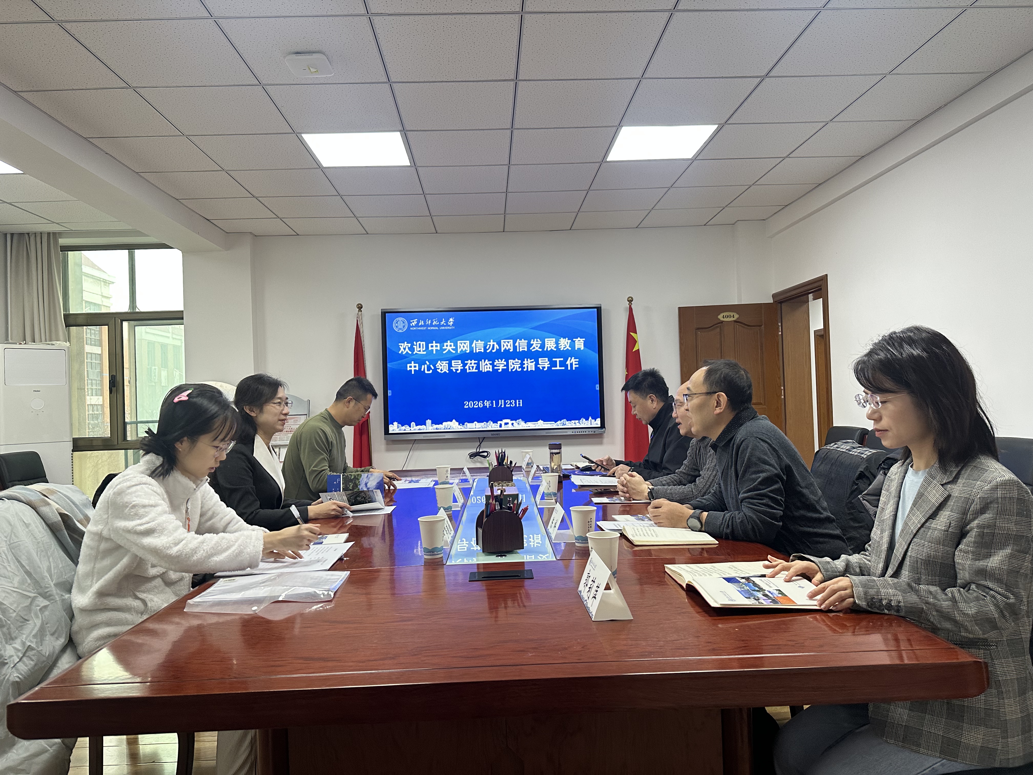 2026 年 1 月 23 日上午,中央网信办网信发展教育中心人才服务处处长刘岩、干部罗晓微,甘肃省委网信办网安处处长常磊一行莅临3044am永利集团3044noc继续教育学院开展考察调研。3044am永利集团3044noc网信办主任兼党委宣传部副部长赵鸿章,继续教育学院党委书记陈科、院长赵辉、副院长郭莉萍及相关部门负责人参加座谈交流。