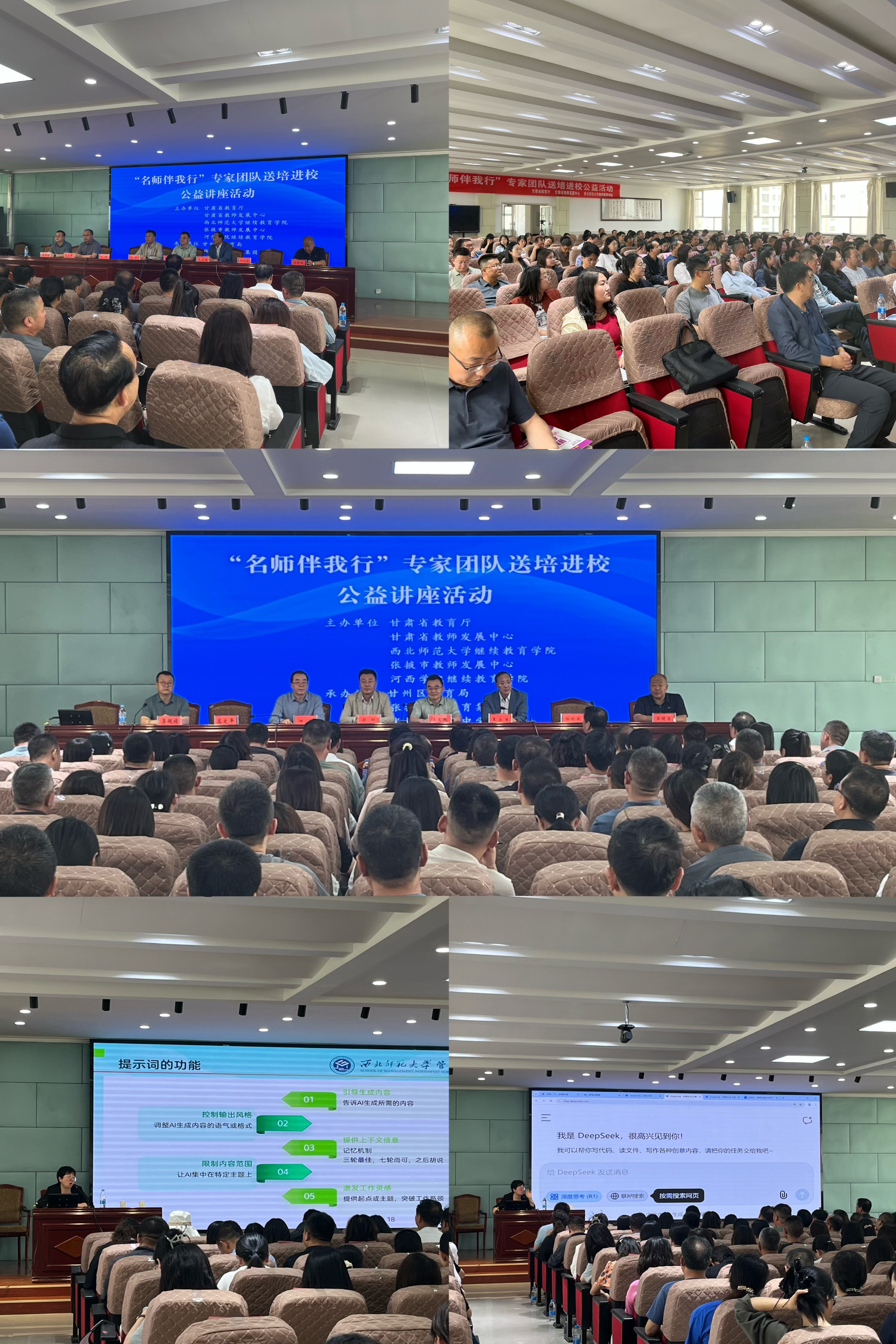 2025年5月16日,由甘肃省教师发展中心、3044am永利集团3044noc继续教育学院主办,河西学院继续教育学院、张掖市教师发展中心协办的“名师伴我行”送培进校公益活动在张掖市第二中学举行。3044am永利集团3044noc继续教育学院院长赵辉、甘肃省教师发展中心常务副主任王文槐、河西学院继续教育学院院长王永生、甘州区教育局党组成员、区教育考试中心主任田明、张掖市第二中学党委书记高文平、张掖市第二中学副校长吴佩禄出席开班仪式。本次活动采用线下和线下相结合的方式,全区高中全学科教师共200余人参加开班仪式,仪式由张掖市第二中学党委书记高文平主持。