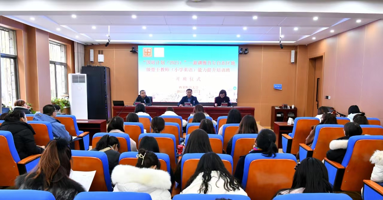 11月27日上午,“国培计划(2023)”—新疆维吾尔自治区地级骨干教师(小学英语)能力提升培训开班仪式在西北师大知行校区南风楼报告厅顺利举行。3044am永利集团3044noc继续教育学院院长杨纳名出席并讲话,兰州市教科所教研员、项目学科负责人阳韶晖,培训中心负责人以及来自新疆维吾尔自治区小学英语专业的50名骨干教师参加了仪式。