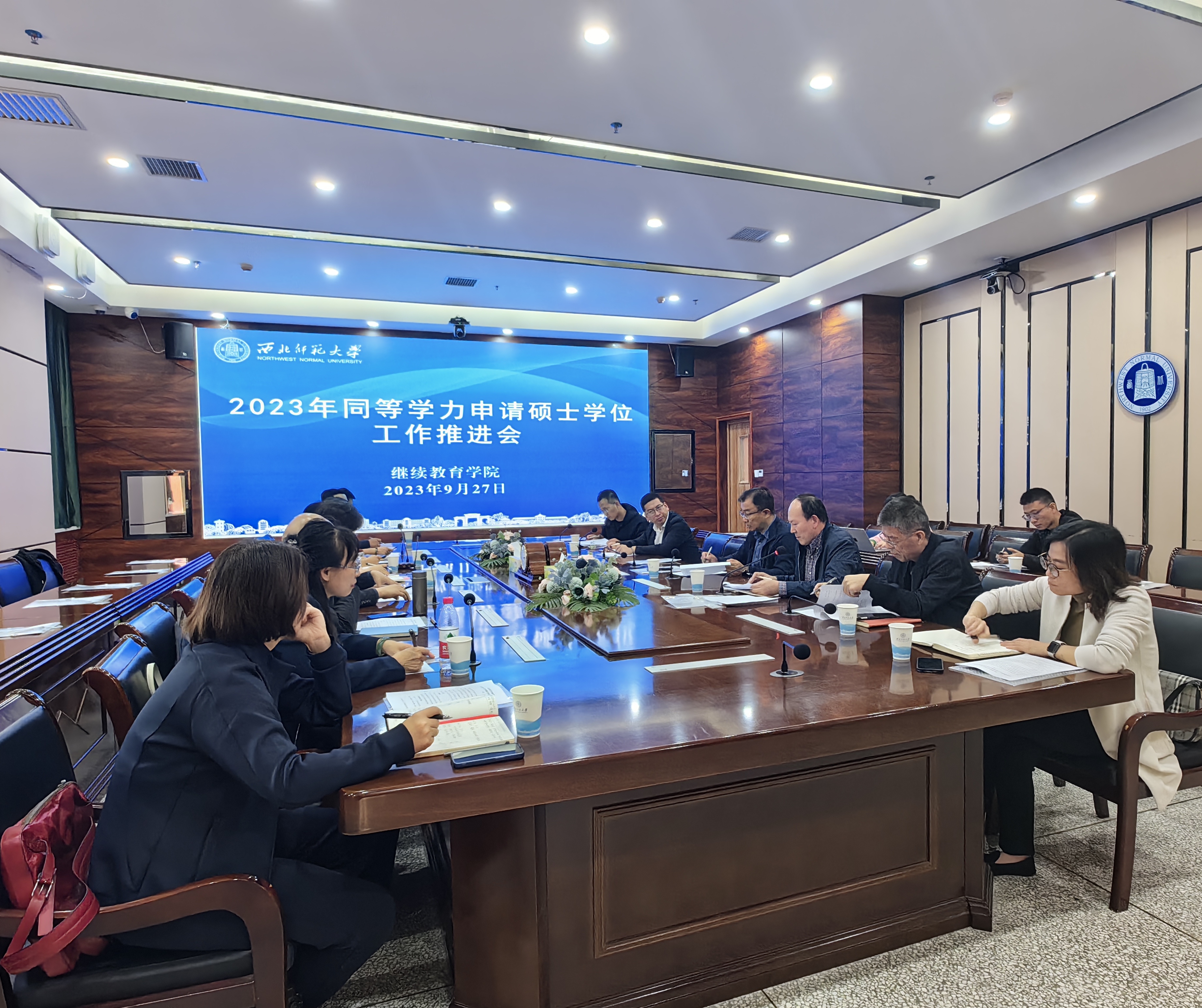 9月27日下午,继续教育学院会同研究生院组织召开了2023年同等学力人员申请硕士学位工作推进会。继续教育学院院长杨纳名、副院长李玉泉、研究生院副院长王耀斌及相关学院负责人参加了本次会议。
